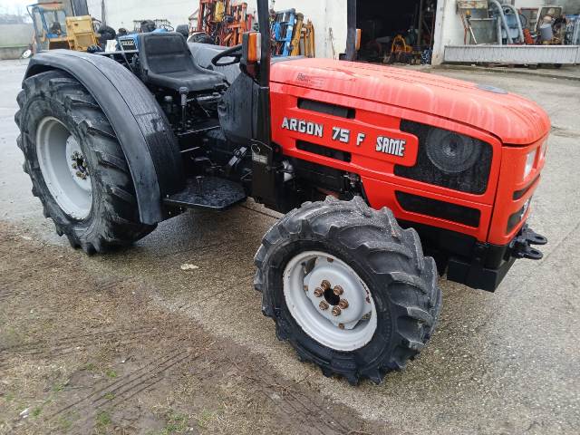 SAME mod: ARGON 75 DT-F, motore 3 cilindri turbo, freni anteriori 40km/h, gommato posteriore 80/90 %, gommato anteriore 50/60 %, 2 distributori a doppio effetto, frizione fatta un'anno fa, da vetrina