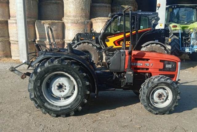 SAME mod: ARGON 75 DT-F, motore 3 cilindri turbo, freni anteriori 40km/h, gommato posteriore 80/90 %, gommato anteriore 50/60 %, 2 distributori a doppio effetto, da sistemare un po' la carrozzeria, frizione fatta un'anno fa, IN ARRIVO