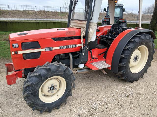 SAME mod: FRUTTETO I 75 DT, motore 4 cilindri 4000 cc, inversore, 33 km/h, no fremi anteriori, 2 distributori a doppio effetto, gommato bene, 3876 ore, in buono stato