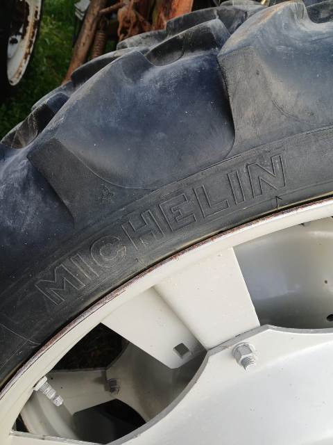 2 ruote complete di cerchio e flangia, marca MICHELIN 8.3-44, per semina, adatte per trattori da 60 a 75 hp, seminuove
